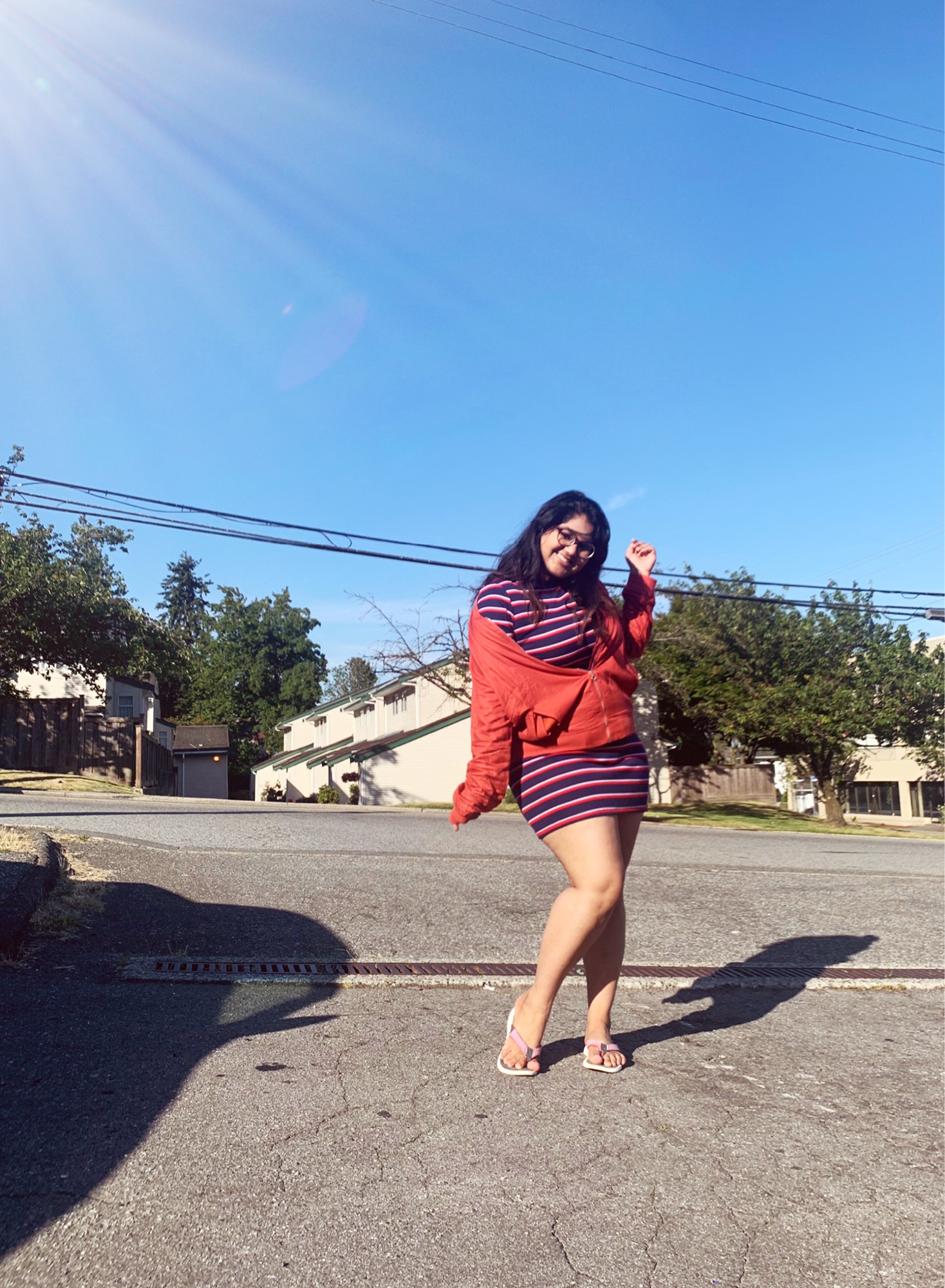 - Layer things if necessary : I personally layer clothes on the areas that make me nervous.At times i wear a jacket that goes with the dress, or sometimes tie the jacket or shrugger around the waist highligting the waist.